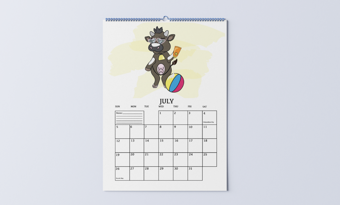Montana was able to take her fine illustration skills and put them into layout to make it look nice and organized. This 12 month calendar will be able to print it out and use it. Montana further explains that the calendar has both beef and Holsteins cattle draw inside inside as it’s to be a fun playful calendar.